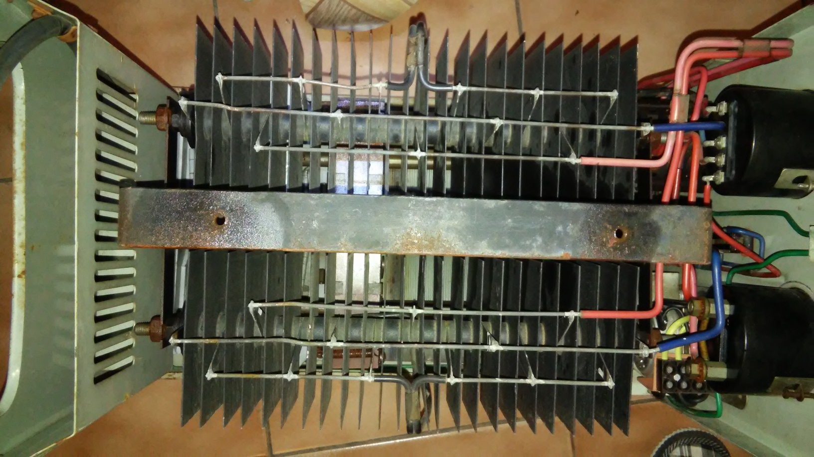 Usměrňovače jsou dva (dvě vinutí, přepínač je přepne buď paralelně - poloha 24V/20A, nebo sériově - poloha 48V/10A), jakési staré selenové, obrovské, zabírají půlku skříně.