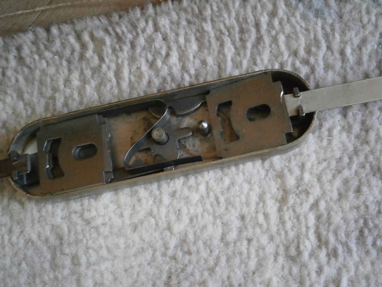 Podle fotek máš akorát vypadlé jedno stavítko. Stačí to zase poskládat dohromady, popřípadě stavítka popřeházet podle klíče.