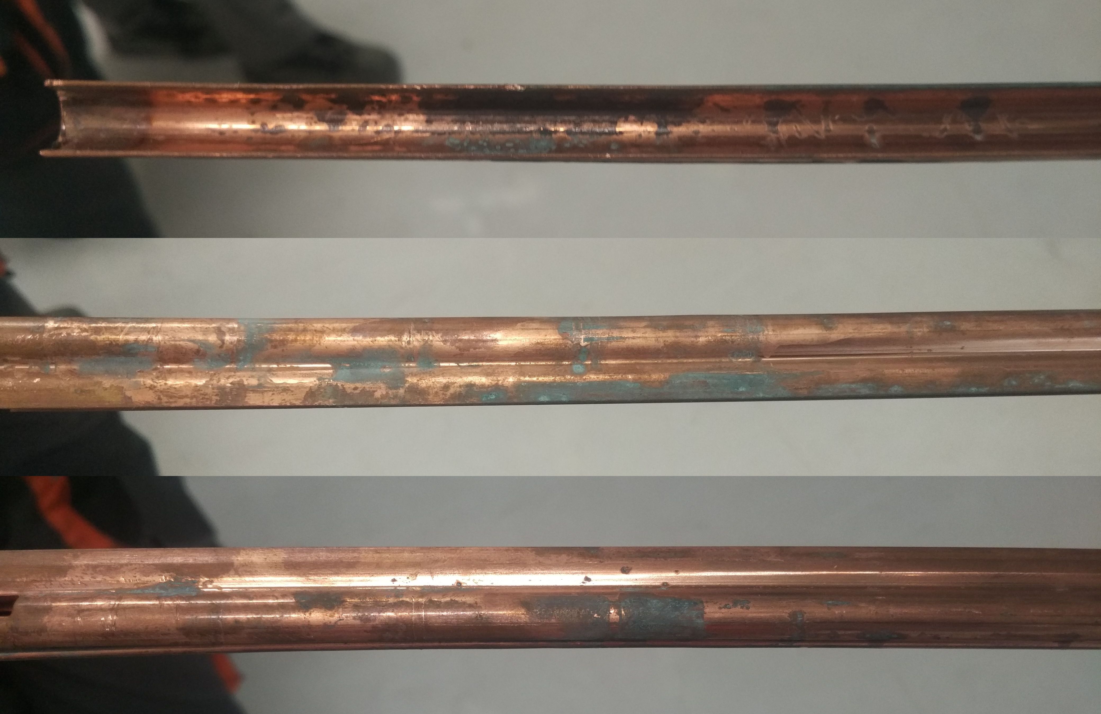 Potřeboval bych prosím pomoc s určením příčiny oxidace měděné sběrnice. Je nová, namontovaná cca 6 - 8 týdnů částečně v novostavbě, částečně v rekonstruovaném objektu. Mokré procesy byly do poloviny dubna hotové, od té doby je prostor po celé léto velmi dobře větraný. Pod napětím byla je sporadicky, zkušebně. Je schovaná v plastovém pouzdru, montovaná do hliníkové kolejnice.