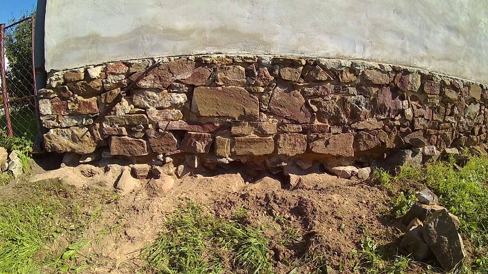 Jestli je to pískovec, tak ten se právě na rozhraní s cementem lehce rozhasí a odpadne. Alespoň zdejší.