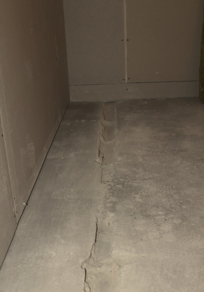 bohužel celoplošně, žlábek je po původní příčce, ale podlahy jsou v jiné výšce, ale také ta jedna je šikmo a nej rozdíl je 2cm.