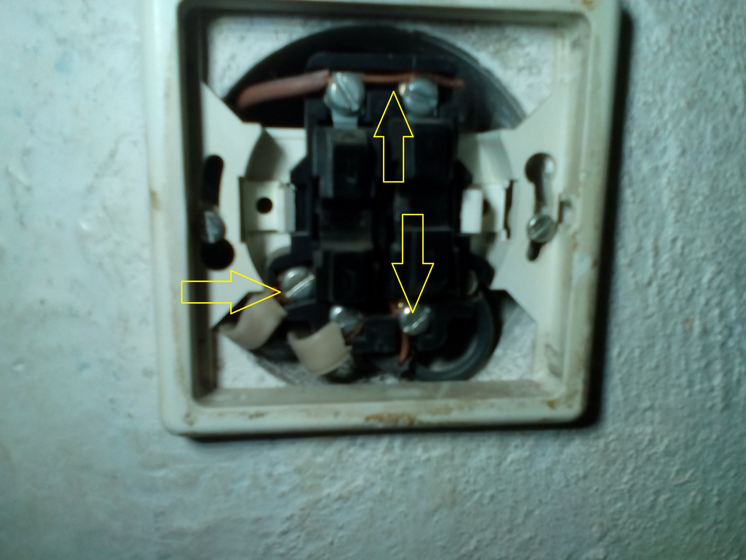 Zdravím mám menší problém. porřebuji vyměnit stary nefungční dvojvypínač za novy. Viz fota. ( šipky označují naměřenou fázi)