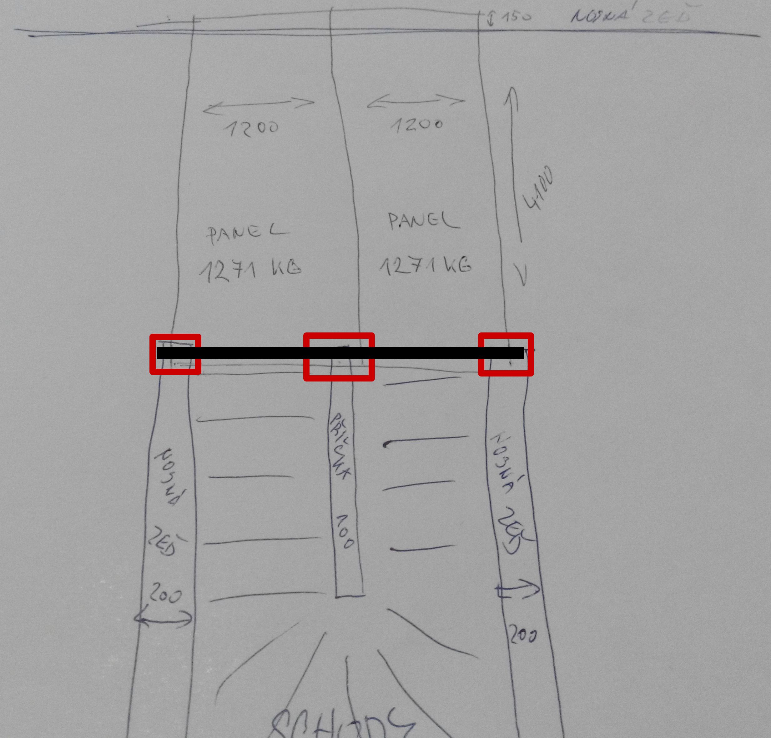 Dobrej chtel bych poradit s jakou traverzu mam dat nad chody aby mi to uneslo panely a horni patro(viz. nakres).Dekuji za odpovedi