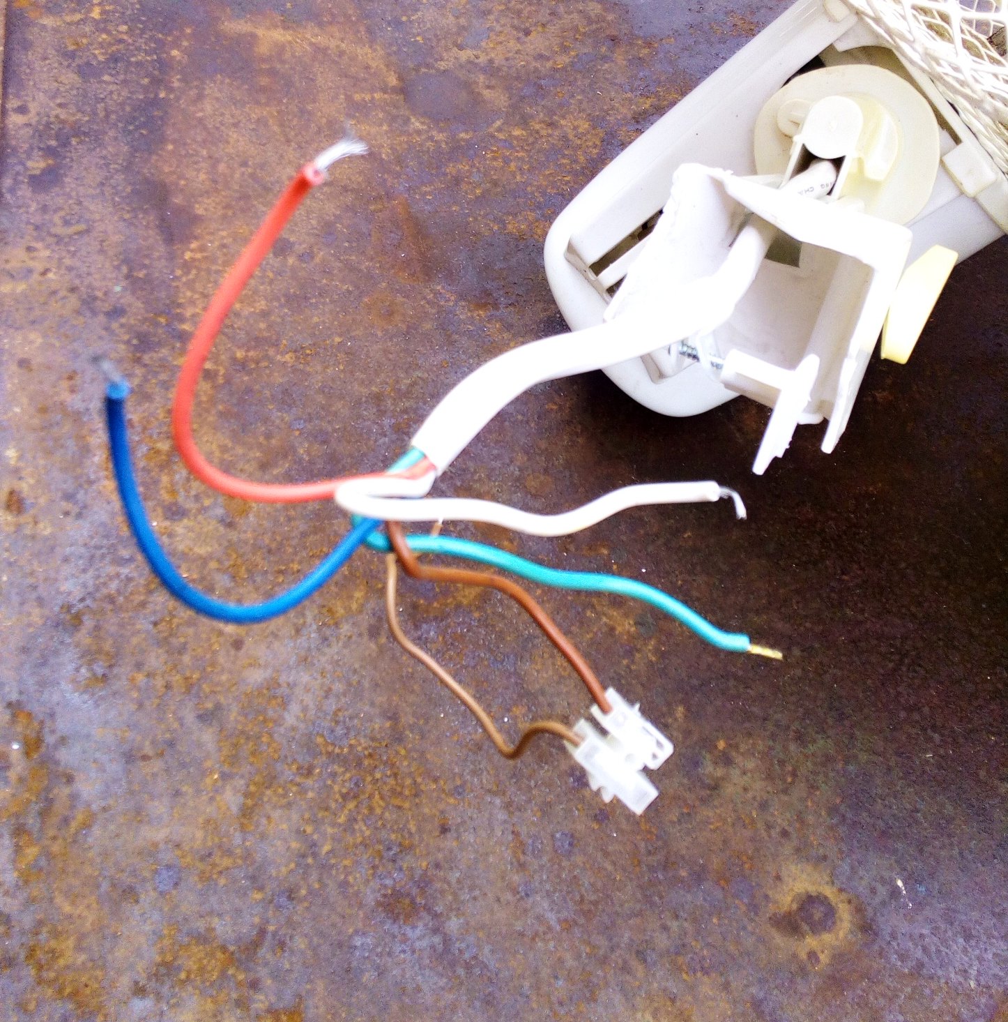 Ja osobne vidím len koniec kábla. Tento koniec nebol pripojený na vstupnú svorkovnicu, ale slúžil na prepojenie vnútri zariadenia. V takom prípade žiadna norma nepredpisuje farby vodičov. Ak by si mal nejaké teoretické vedomosti o konštrukcii motorov, mohol by si merať a odhadnúť zapojenie. Počítaj s tým, že medzi motorom a napájaním 230V bol minimálne prepínač, ale mohli tam byť aj odporníky či kapacity. V každom prípade ti nikto nedokáže povedať ako je zapojený kábel na jednom konci keď vidí len koniec druhý.