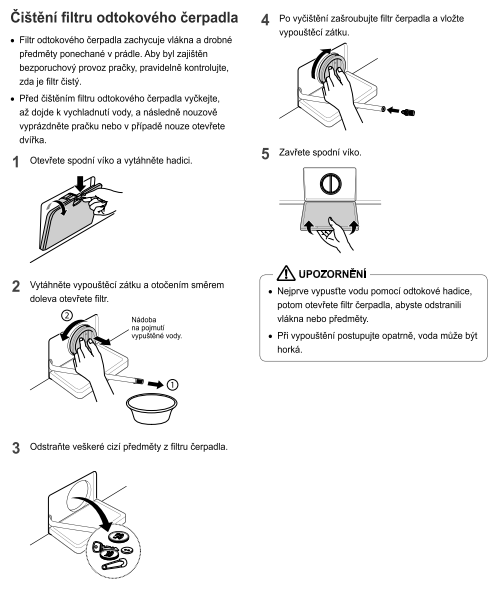 Jinak buben pračky bývá pro tyto účely vybavený odnímatelnou částí, umístěnou naproti dvířkůn, ale to už tu někdo psal. Tato část nemusí být nutně plastová, mám pocit, že u současné pračky má stejnou barvu a materiál jako buben. Nevím, jestli jsme to za životnost pračky rozebírali, naposledy pětikoruna a předtím táhlo od zipu prošlo až do čerpadla k filtru. Tomu co je v nákresu v příspěvku #1. Ten návod je dost optimistický, člověk rozebírá filtr až když voda vypustit nejde, takže bez potopy se to neobejde, protože prostě vykyblíkovat vodu z pračky jde jenom po úroveň bubnu a ještě jí dost zbyde (to ovšem neni tento případ co tazatel řeší).
