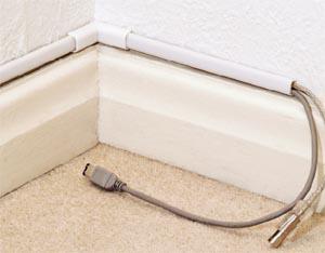 No a co klasická plastová elektroinstalační korýtka /lišty s víkem/. Nalepíš mamutem "terčově" na očistěnou zeď, vložíš kabely do ní a zavíčkuješ. Rozměry různého rozměru, od 1x1 cm až do snad 4 x 10 cm, možná i víc. Zajdi do velkoprodeje elektromateriálu a máš jich na výběr dle potřeby. Ale v běžné "elektře" nekoupíš.