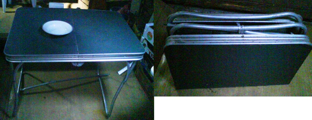 Já jsem měl (a možná ještě někde mám) takový skládací kempingový stůl, šel rozložit a složit bez nářadí, byl větší než ty co se teď jako kempingové prodávají a byl dostatečně stabilní. Měl jsem ho v rohu kuchyně, na něm ubrus a učil jsem se u něj. Pokud bych ho ještě někde (asi na půdě) našel, měl bys ho za odvoz.