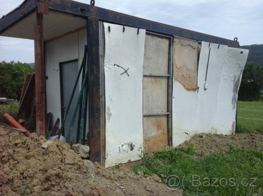 Na Tvém prvním odkazu je klasická "buňka", která byla kryta lignátem a ve stěnách bývala tepelná izolace čedičová, nebo skelná vata. Lignát byl produkt obsahující asbest a v současné době se už nepoužívá. Oprava těchto desek je namožná, pouze je překrýt, nebo nahradit novými, nejlépe OSB deskami, nebo i sádrokartonovými deskami a natřít, případně možno i "nacupovat", nebo nastříkat akrylátovou omítku.