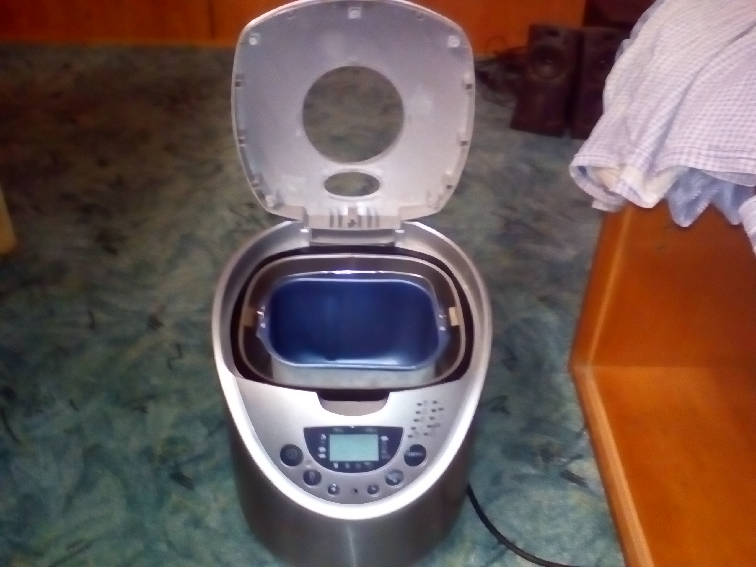Sehnal jsem starší, velmi zachovalou pekárnu na chleba, Moulinex, "home bread", typ OW 300001. Nefungoval pohon míchadla. Podařilo se mi ji opravit, neměla však nádobu (tu jsem již na Bazoši sehnal kompletní, jako novou, za 100,-Kč +balíkovné), ale víko ještě nemá vnitřní část, "sklo" průzoru a mřížku odvětrávání (viz snímky). Zatím se mi tyto díly nepodařilo nikde "objevit". Je to zřejmě nějaký tvarovaný, tepelně odolnější plast a sklo snad rovněž tepelně odolnější "plexi", což jsem zjistil na pekárně podobné.
