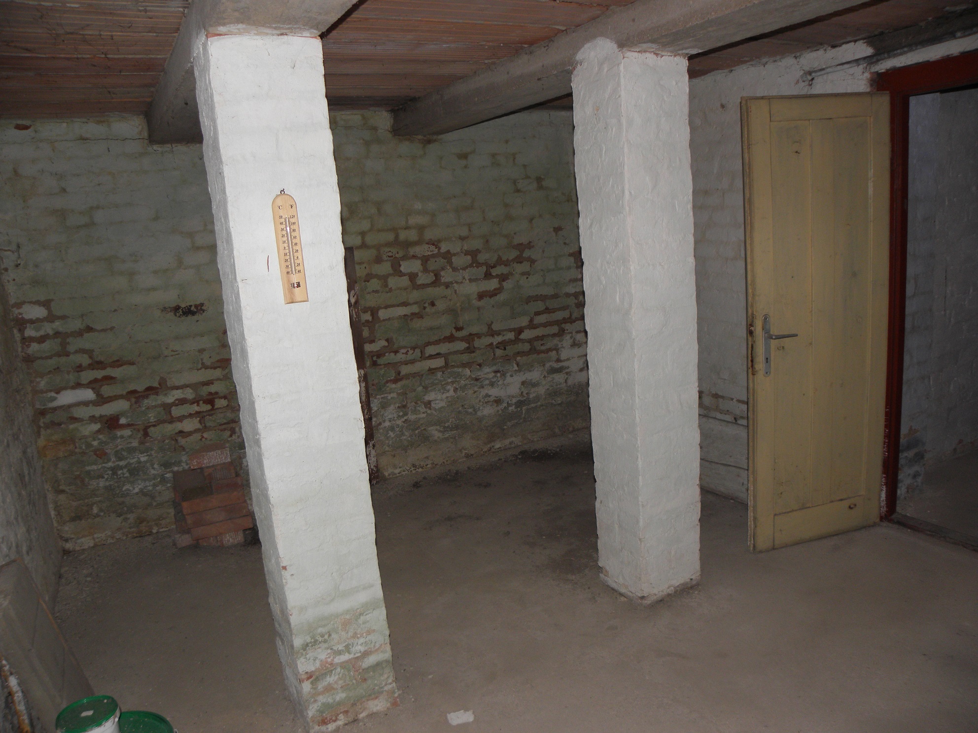 Ve sklepě jsou uložené železobetonové nosníky cca š28 x v13 cm na kterých jsou na maltě naskládané hurdy. Hurdy nejsou z horní části zatřené vápennocementovou maltou, jsou naskládané vedle sebe s vytřenými spárami maltou, na nich je pouze škvára a dřevěný rošt s prkennou podlahou, viz obrázek.