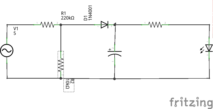 Obvykle se to teda dělá tak, že většina napětí je na kondenzátoru a odpor je tam jen pro omezení špiček. Pak tam musí být něco, co nedovolí, aby na ledce bylo záporné napětí (nemají to rády).