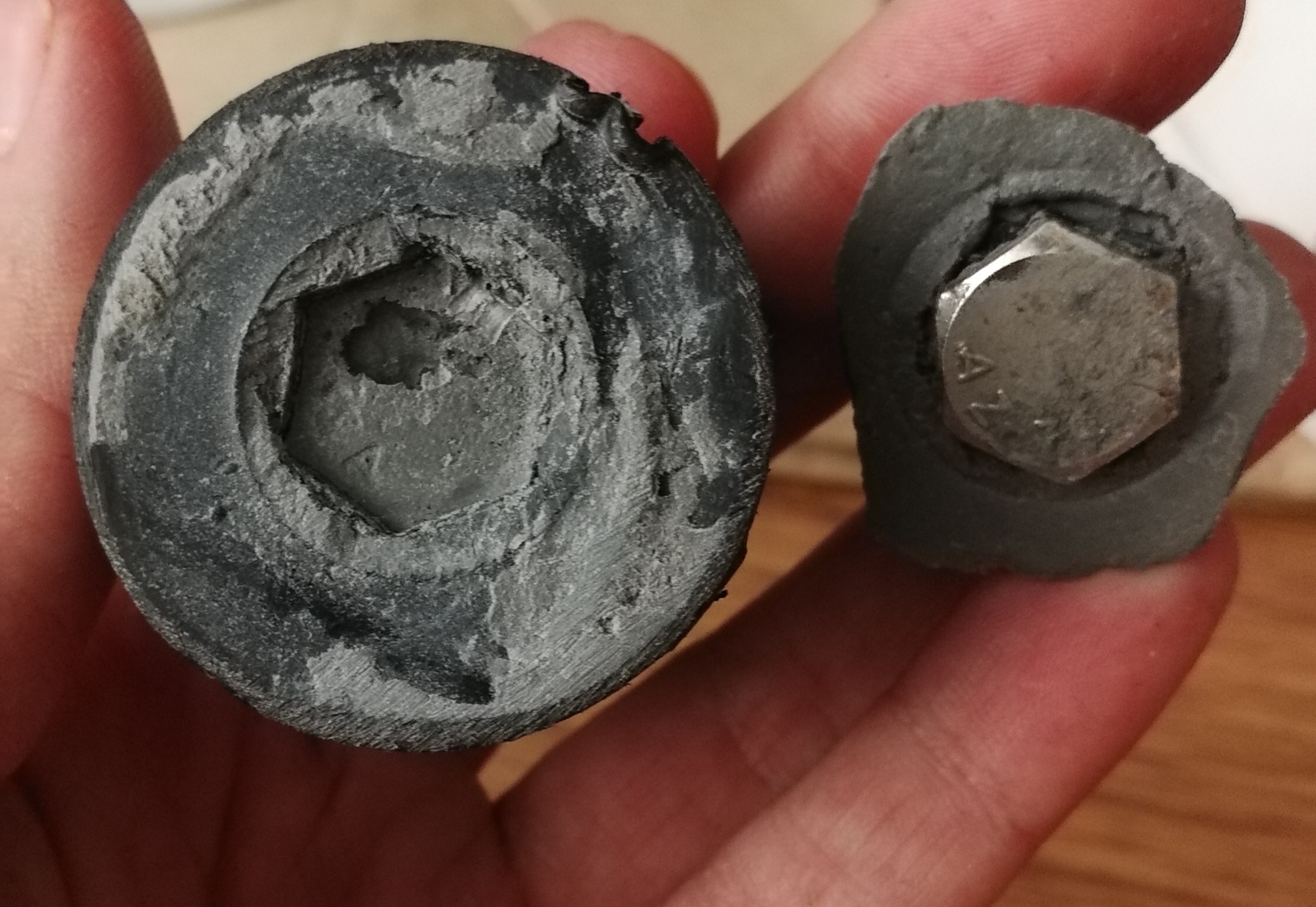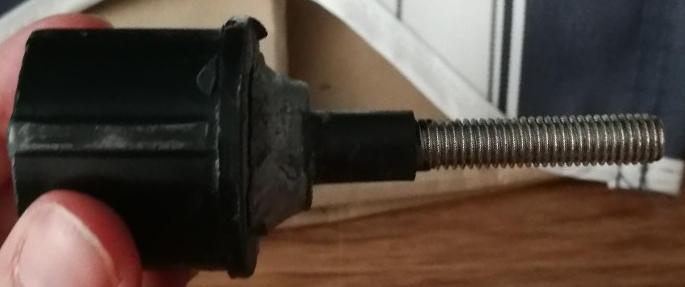 díl s vylomeným šroubem provrtat , tak že se do šestihranu vloží matka a přes ní se provrtá plast skrz , tím se zaručí osové vystředění a pak upravit průměr otvoru aby prošel šroub patřičného průměru , použít co nejdelší co je k dispozici ,nebo cca 25 cm závitové tyče, jednou maticí zvenčí nastavit délku co má vyčnívat a z druhé strany dotáhnout druhou maticí , část tyče vyplnit chemickou kotvou a zasunout plastové víčko se šroubem a mělo by být ok