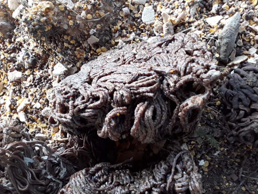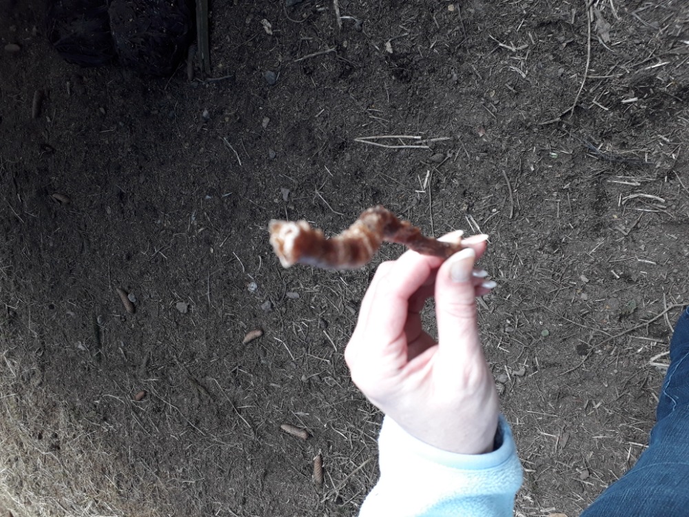 Tohle jsme tuhle našli pri procházce v krmelci. Je to bez zápachu, nebyl v tom hmyz, mouchy, tak to živočišného původu asi nebude. Nevíte někdo o co se jedná?