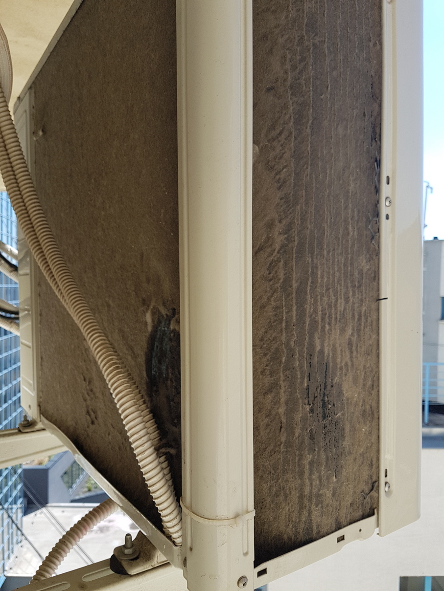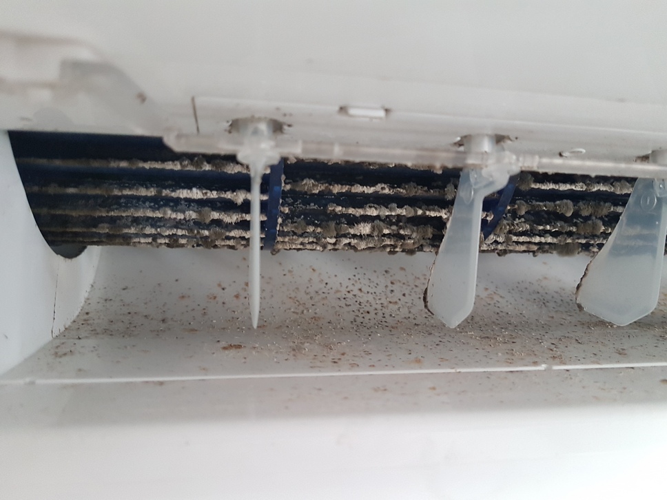 Dostal som sa ku klimatizacii, ktora tiekla zo splitu. Ucpana oddtokova trubka. Ale ked som pozrel blizsie . . . Vonkajsia jednotka nema rebrovanie? Ma, len je schovane :-) kusok vidiet, co som ocistil, pri kontrole ci je tam. Ale hlavny problem, cim, alebo skorej AKO vycistit ventilator vnutornej jednotky? Toto som v zivote nevidel . . .