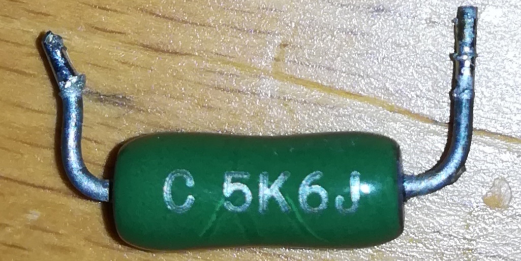 1. zelená součástka C 5K6J (kondenzátor?, rezistor?)