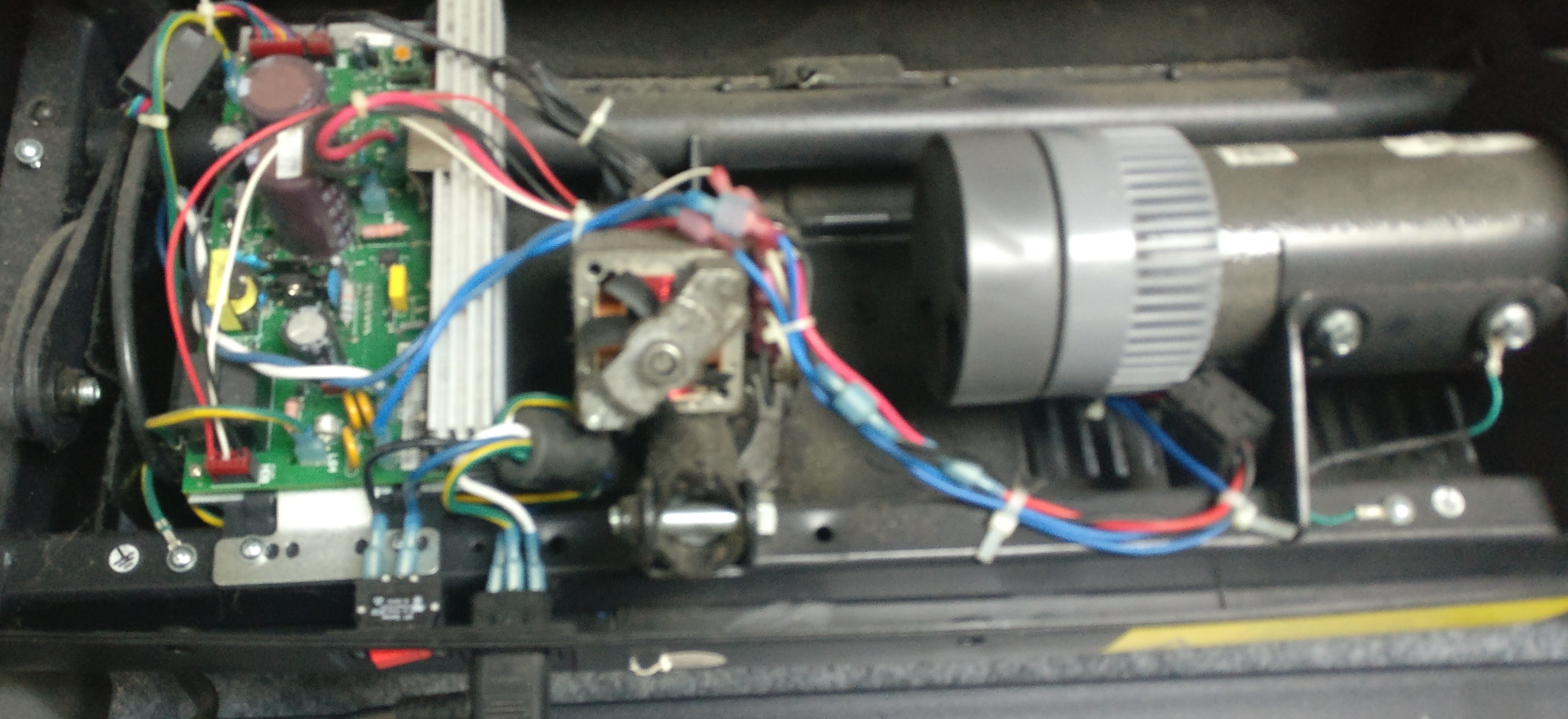 Při zapnutí rychlosti na pásu dostane motoru šlehů a ani se nerozjede a vybaví jistič. Červená dioda na desce signalizuje závadu.