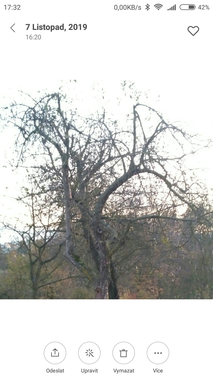 Ještě je třeba zkrátit ty dlouhé slabé větvičky nahoře,aby se vytvořil nový silný obrost.Tak na 3 pupeny.Možná jde o odrůdu plodící na koncích letorostů,která nemá zkracování ráda,ale musí se to občas zkrátit.A hlavně neposlouchat ty nesmysly od Nudy o pohnojení 10 kg hnojiva najednou na 1 strom,to ho odděláte.