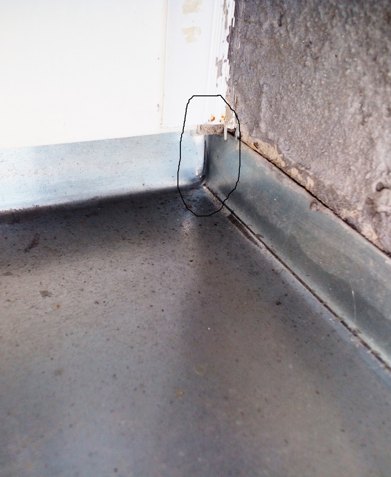 Lišta s lepidlem asi 1cm široká by měla být odlomena a bylo by více vidět pod lištu. V rohu dole je kritické místo, zkusil bych pouštět obarvenou vodu inkoustem.