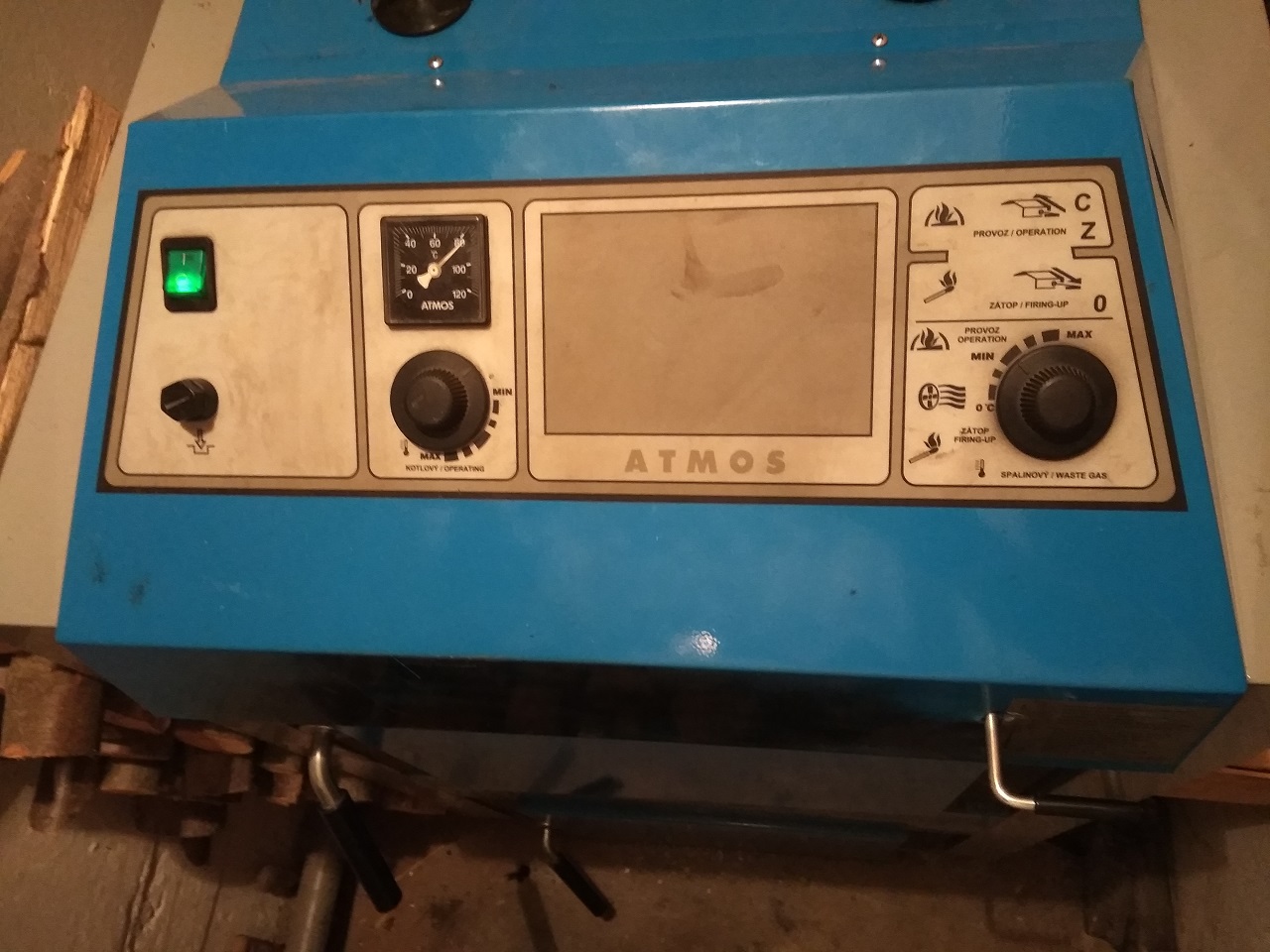 Odtahový ventilátor funguje. Teď už nějak funguje vše. Na kotli je jen jeden ventilátor (jiný jsem nenašel), ale je tam možnost ovládat ještě spalinový (na obrázku ten čudlík vpravo). Když jej otočím na "zátop", úplně doleva, ten kotlový normálně běží. Když ho ale otočím do provozní polohy, kotlový se vypne a nenaběhne. Musím jej nechat v té poloze "zátop" na "nule".
