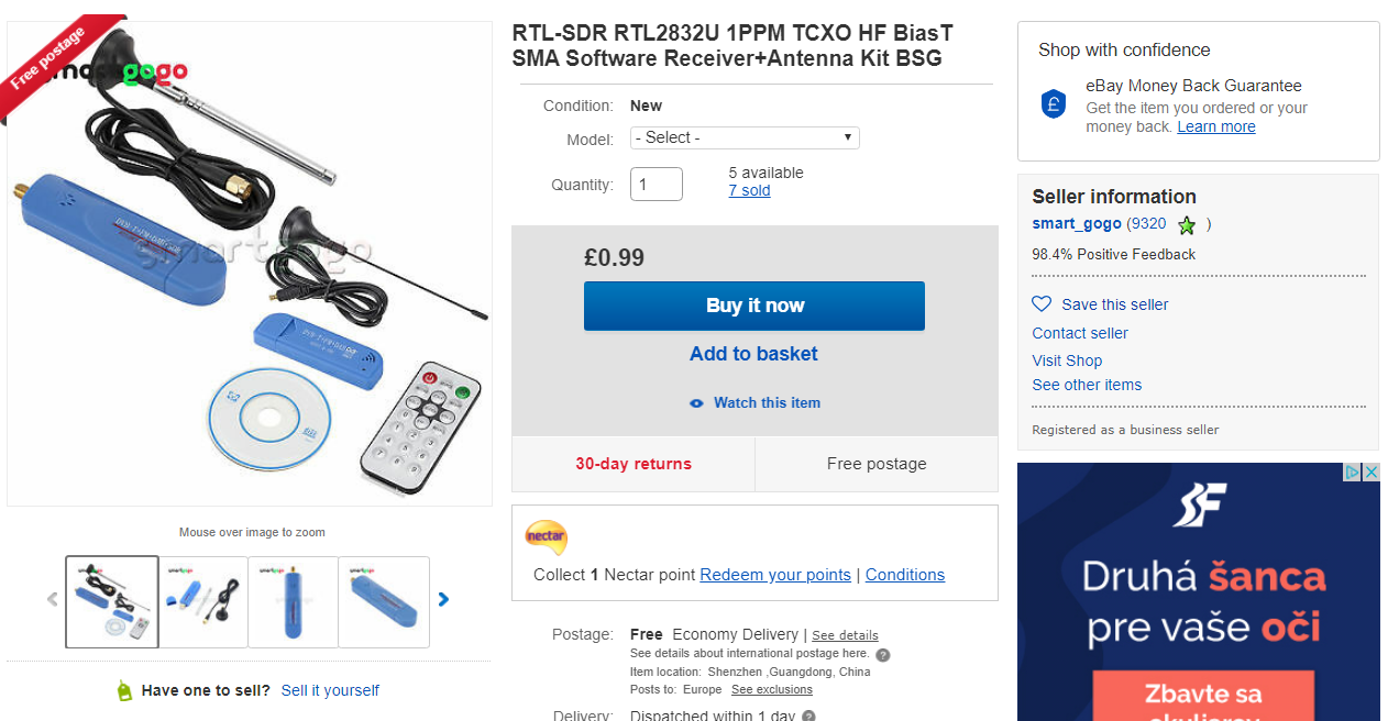 Na ebay som našiel USB klicenku s RTL2832U za výhodnú cenu. Foto v prílohe. Chcem ju objednať ale nemám Pay Pal.