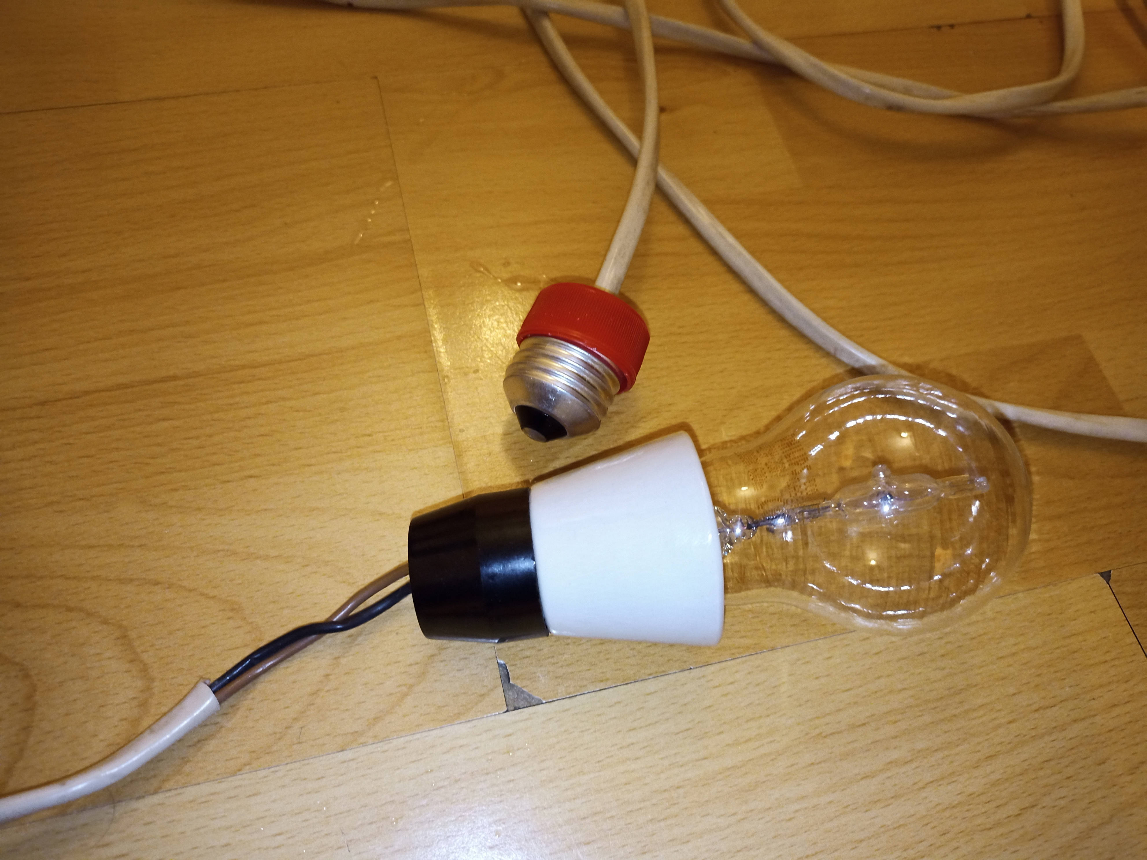 Stručně: Potřebuji objímku, do které dám žárovku, která bude na metr a půl dlouhém kabelu, jehož druhý konec bude mát ukončení jako má žárovka. Využití: Vymontuju stávající žárovku v místě potřeby, našroubuju udělátko a budu si svítit na metr a půl vzdáleném místě.