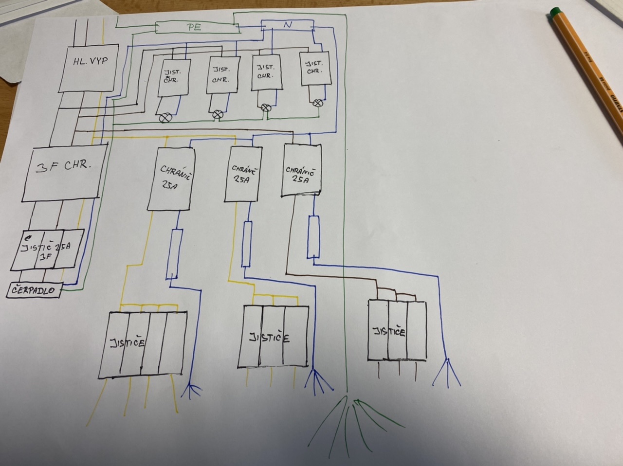 Nákres zakresluje schéma hlavního rozvaděče a nevidím v tom žádný zásadní problém. Z prvních 2 fází…