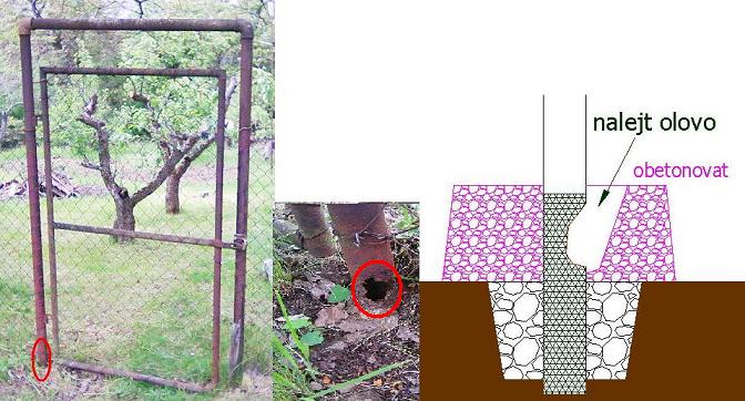 V zahrádkové kolonii mám v plotu branku z trubek zabetonovaných do země. V jedné trubce prorezla díra. Chtěl bych ji opravit způsobem co bych zvládnul sám, aby to bylo co nejjednodušší. Na zahrádce nemám zavedenou elektřinu.