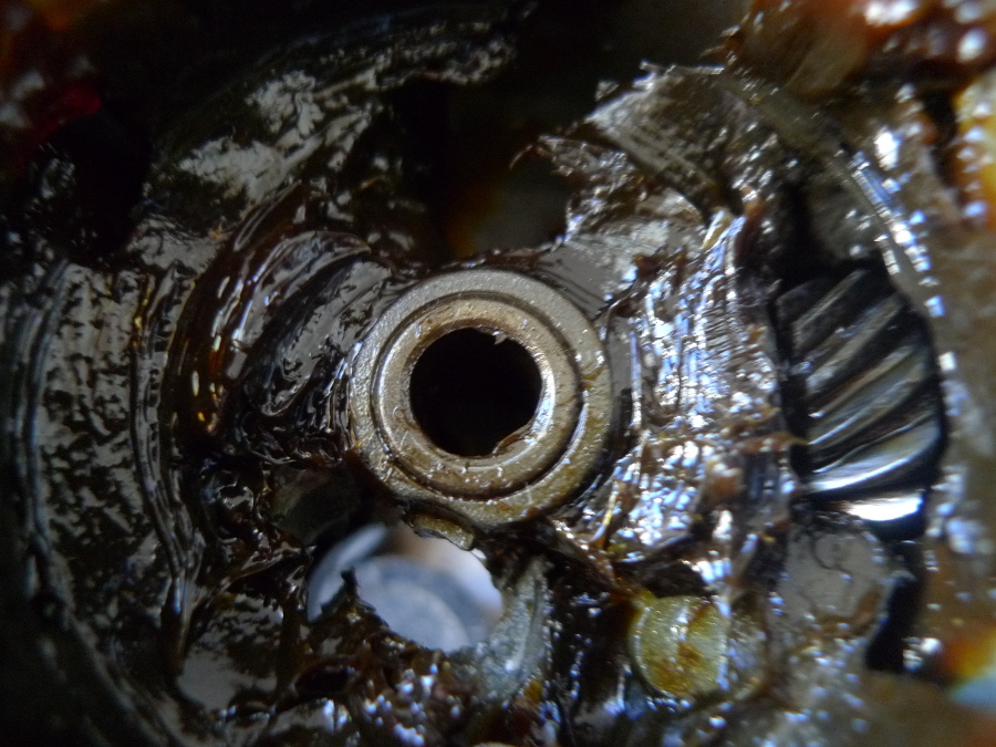 Výborně jste si s tím pouzdrem poradil. To pouzdro jde odstranit /vyjmout/ pouze odvrtáním, je v té hlavě brutálně zalisováno. Je to pouzdro tzv. samomazné a tudíž měkké a málo odolné mechanickému ataku při vyjímání. Je vyrobeno z velmi porézní slitiny, která je pak napuštěna ložiskovým olejem, který maže pouzdro po celou dobu životnosti. Tato pouzdra se používají v celé řadě malých motorků /auta, hračky, domácí spotřebiče, ventilátory atd. atd./ a různé mechanické stroje a přístroje.