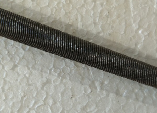 Pilník má šroubovitě vysekané zuby a otáčení vpravo se zakusuje do materiálu. Opačným otáčení se dostane ven.