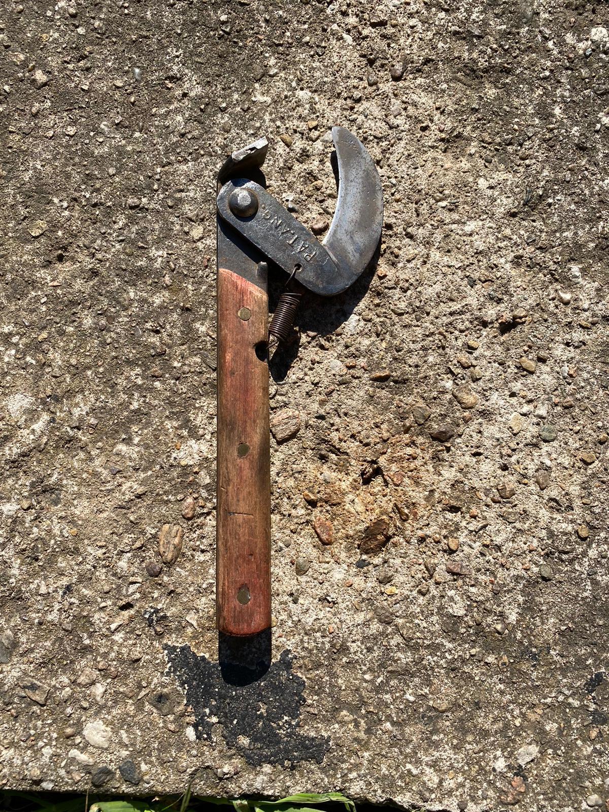 Videl som to kedysi dávno. Asfaltéri takým nástrojom otvárali 200l plechový sud s asfaltom, podobne ako sa otvára konzerva. Zabodli hrot tohoto nástroja do plechu a kývavými pohybmi pákou prerezali plechový sud tak, aby mohli plech zlúpnuť zo stvrdnutého asfaltu. Odstránili najprv veká a potom plášť prerezali po dĺžke a odstránili aj ten. Z týchto plechov (z toho plášťa) si potom istá skupina občanov stavala bungalovy. Teda môžeme to nazvať otváračom na hodne prerastené konzervy. Samozrejme, do takých sudov sa balia aj iné materiály a často stačí odrezať len veko - tiež týmto nástrojom.