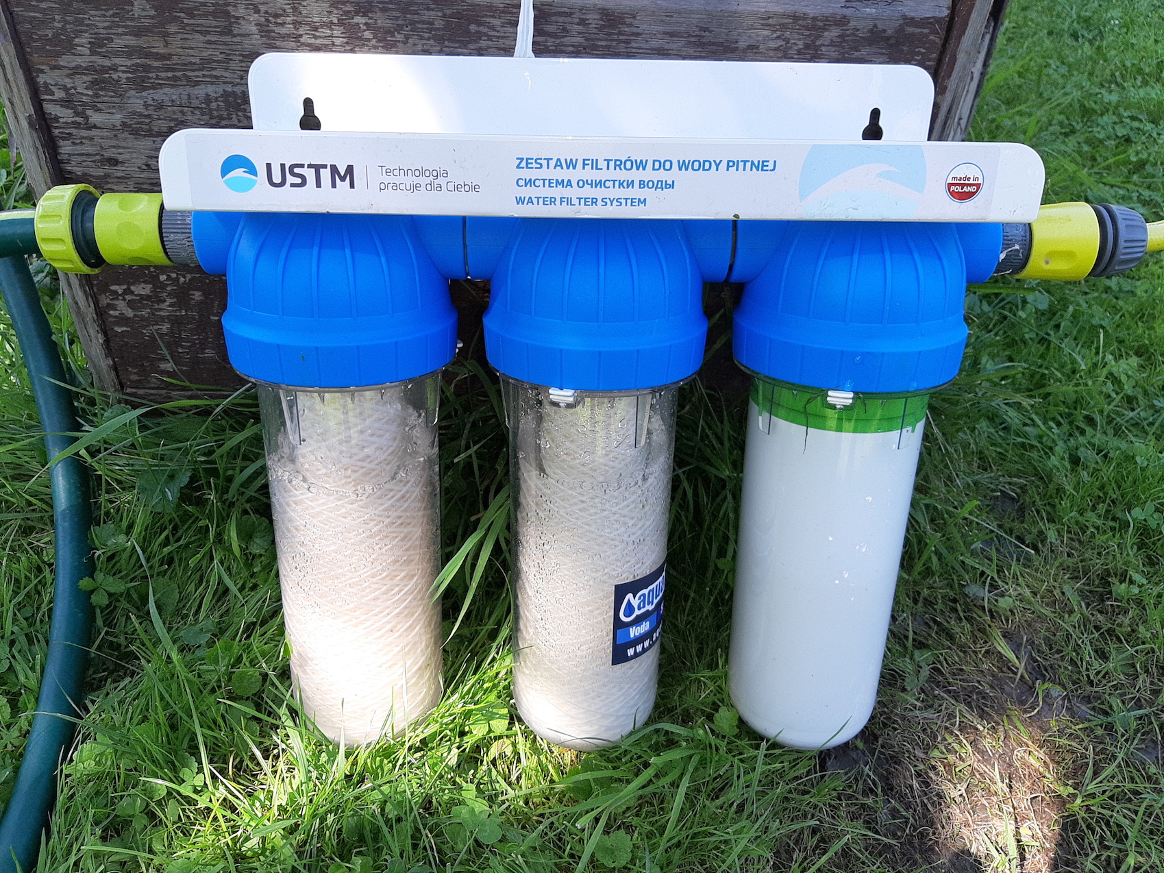 Zapomnel jsem pridat, jak to dopadlo. Koupil jsem tento filtr. Filtracni patrony jsem zvolil 2x tuhle, a 1x tuhle. Vysledek zde (srovnej s fotkou ze zadani, myslim, ze to za to stalo). O ten lehky rezavy nadech se postara vlockovac a filrace. Diky vsem za odpovedi.
