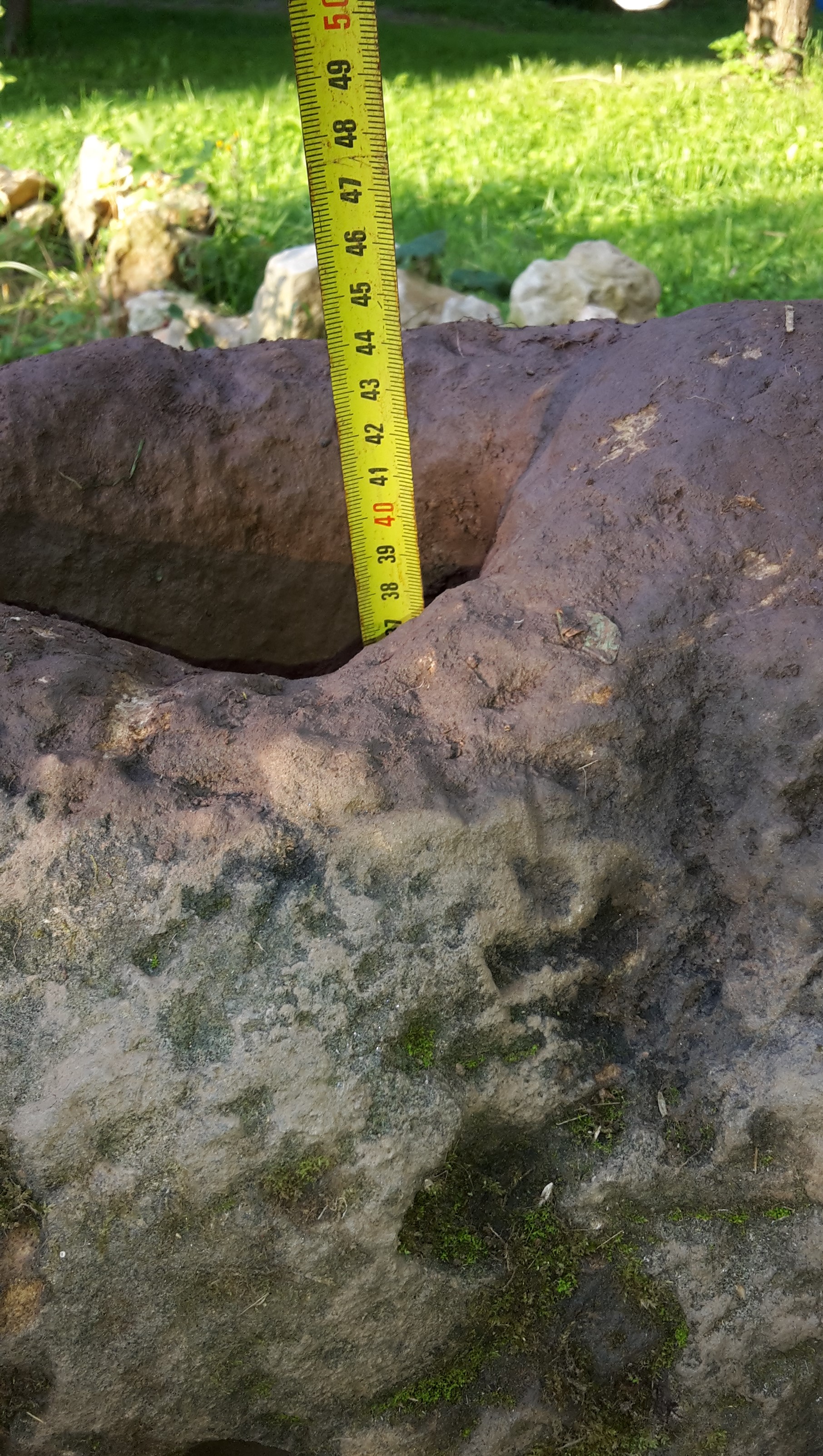 Vykopal jsem na zahradě tento kámen (viz příloha) a po bližším ohledání jsem na něm objevil pár zajímavostí (několik pravidelných důlků o průměru cca 2 cm a zejména díru, která pravděpodobně nevznikla sama (vleze se do ní (těsně) ženská ruka)). Nevíte někdo, jestli (pokud je to práce člověka (jakože pravděpodobně ano)) by mohl tento kámen být z historického hlediska nějak zajímavý nebo alespoň na koho se obrátit o názor?
