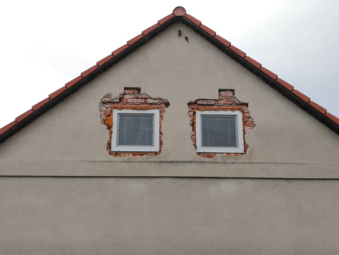To je mnoho možností, od obyčejného zahození maltou, až po rekonstrukci celého štítu se zateplením. Vzhledem k tomu, že máte novou střechu, budete i zateplovat? Jaký je prostor za těmi okny? Pokuj či půda?