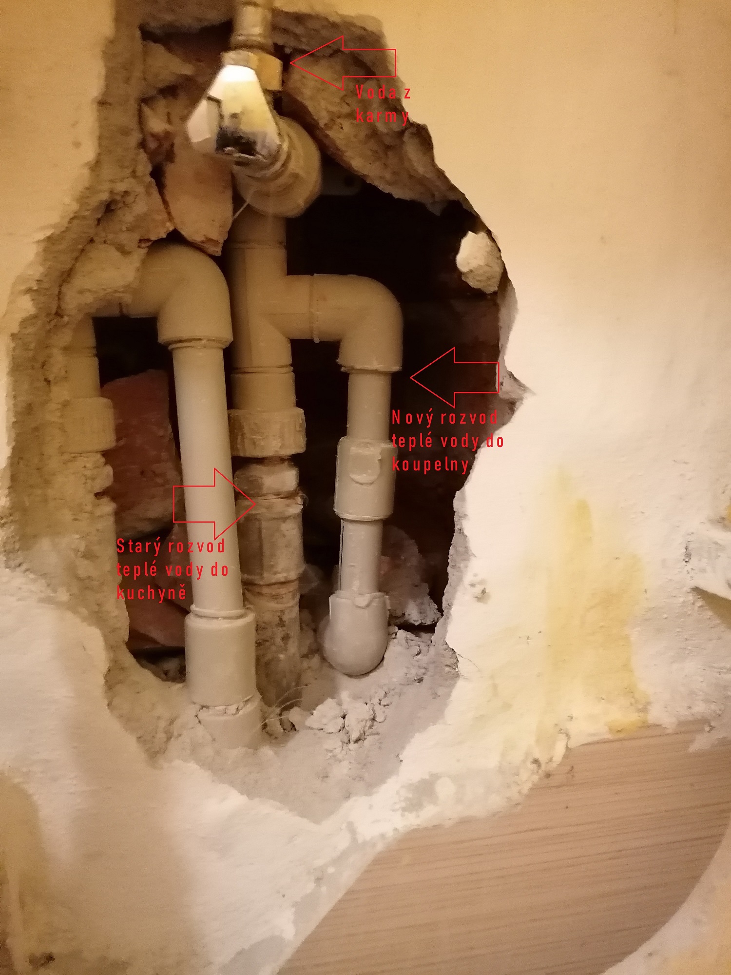 Vyfotil jsem kousek rozkopané zdi,zda mi někdo poradí jak zjistit zda je prasklé potrubí do koupelny nebo do kuchyně?