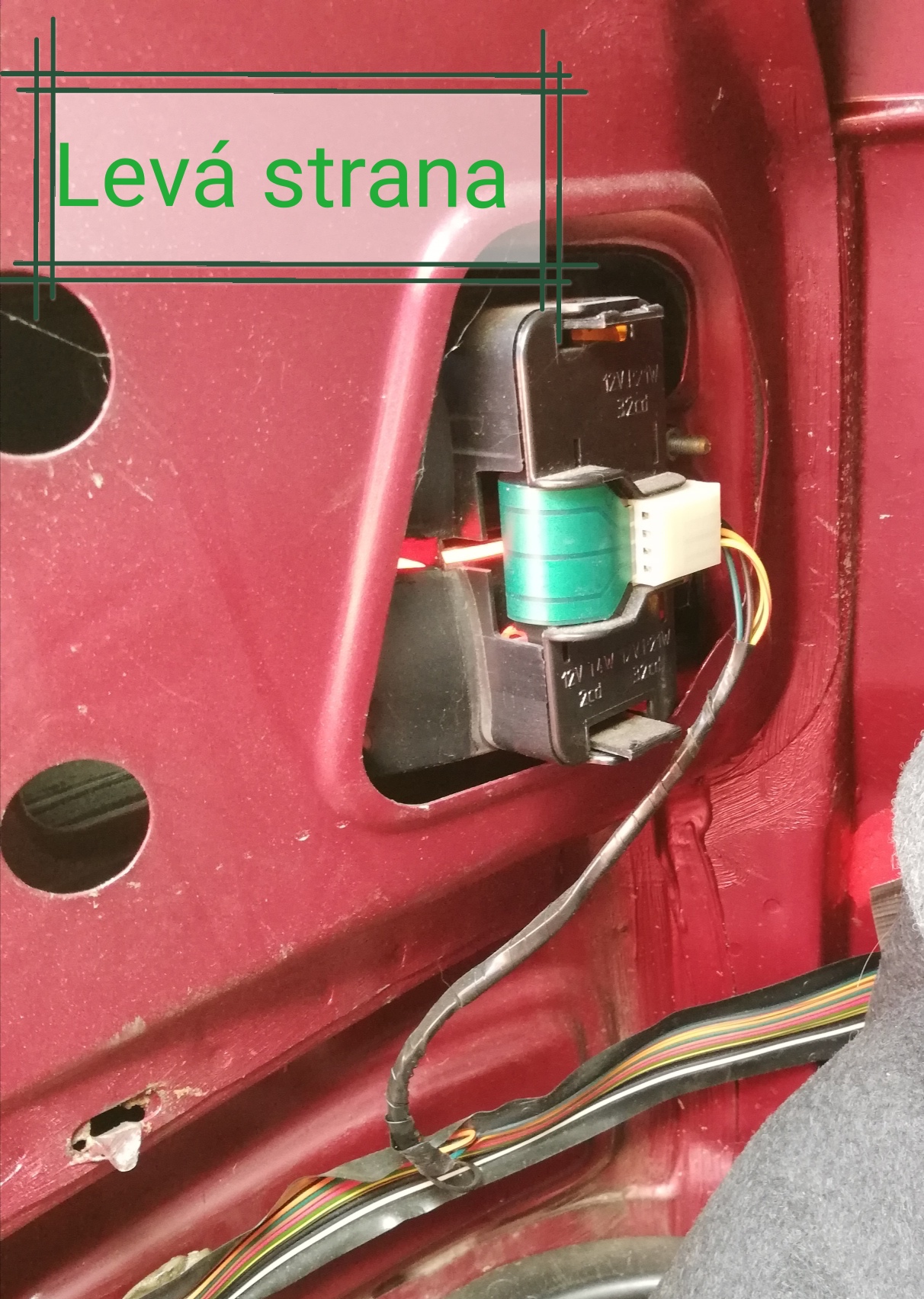 koukal jsem na velký svazek co vedou podel karoserie, jenže je tam těch barev více, takže na barvy raději nespoléhat a určitě zkoušet,že?