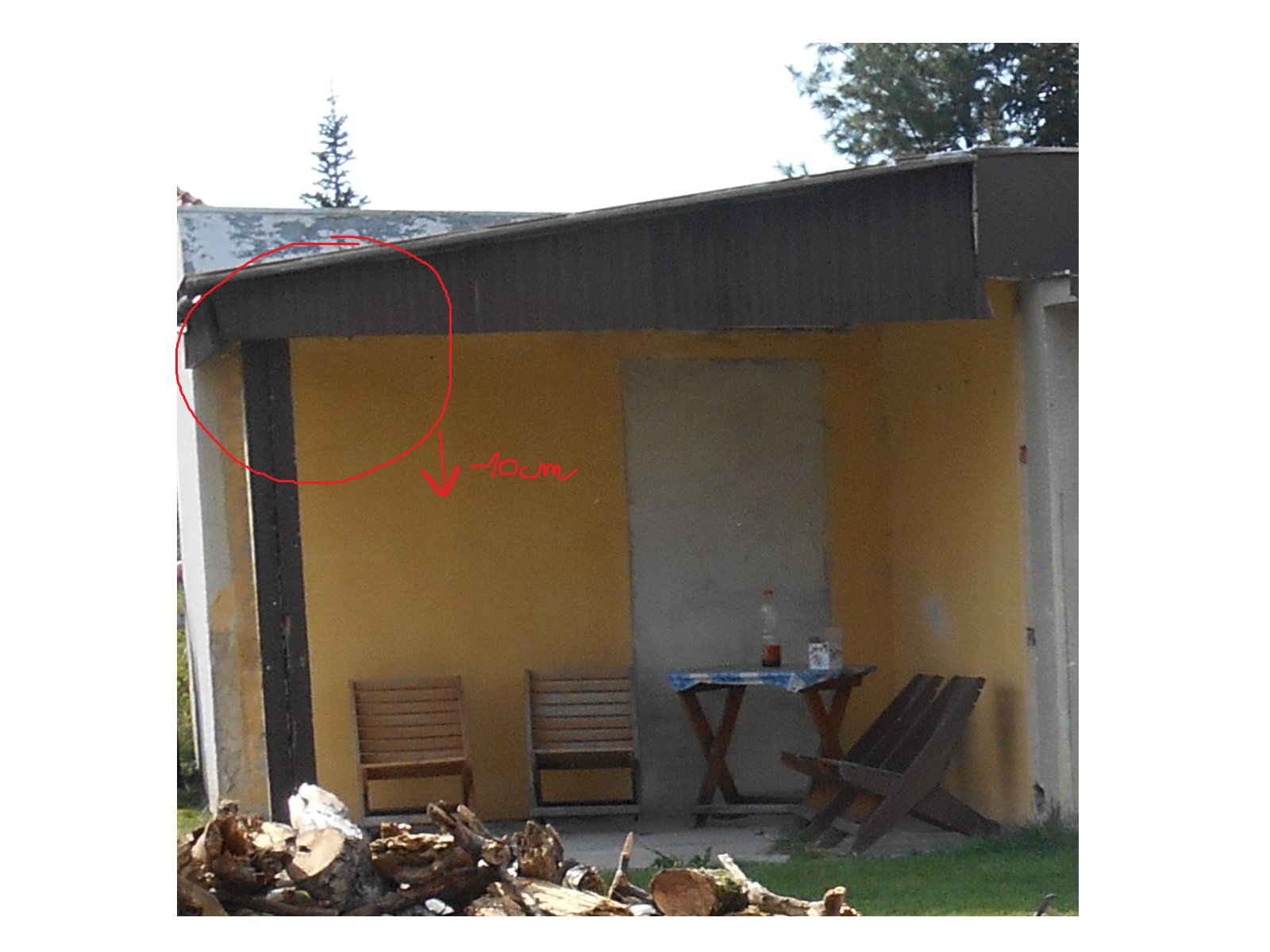 Mám přístřešek vedle garáže(původně zastavěn cihlama) a celá konstrukce se mi pohla letos o 10cm dolu.viz foto