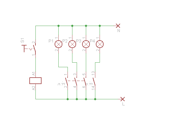 ještě mě napadl dvojitý schodišťák, kde každé tlačítko by mělo svoje dva nezávislém obvody, mám dojem že se něco takového používá když jedno světlo chci ovládat třemi nástěnnými vypínačí