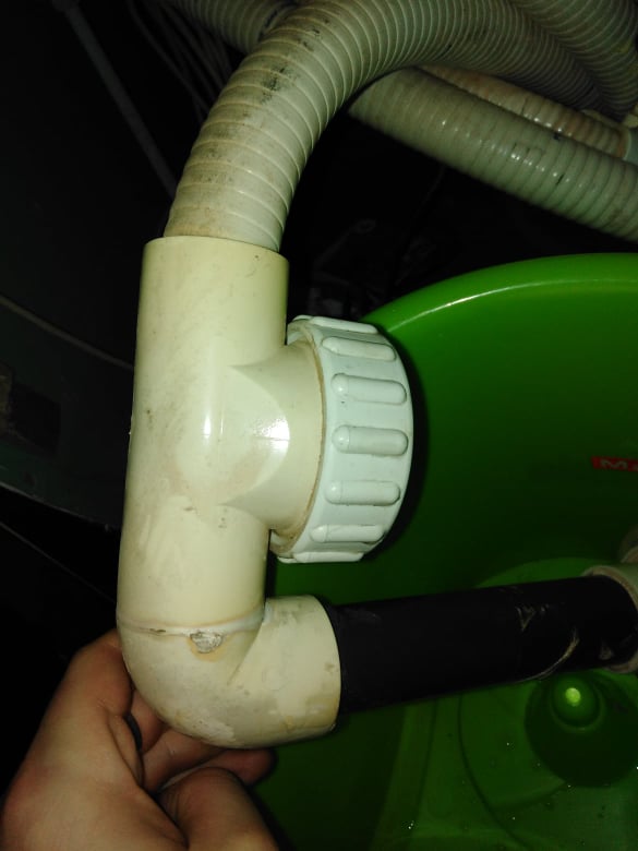 Přestěhoval jsem se do bytu kde je hydromasážní vana která vyhazovala proudový chránič při zapnutí bublin. Zjistil jsem, že čerpadlo, které má za úkol vhánět vzduch do trysek je plné vody. Chyba je ve zpětné klapce která je umístěná hned u čerpadla. (viz foto).