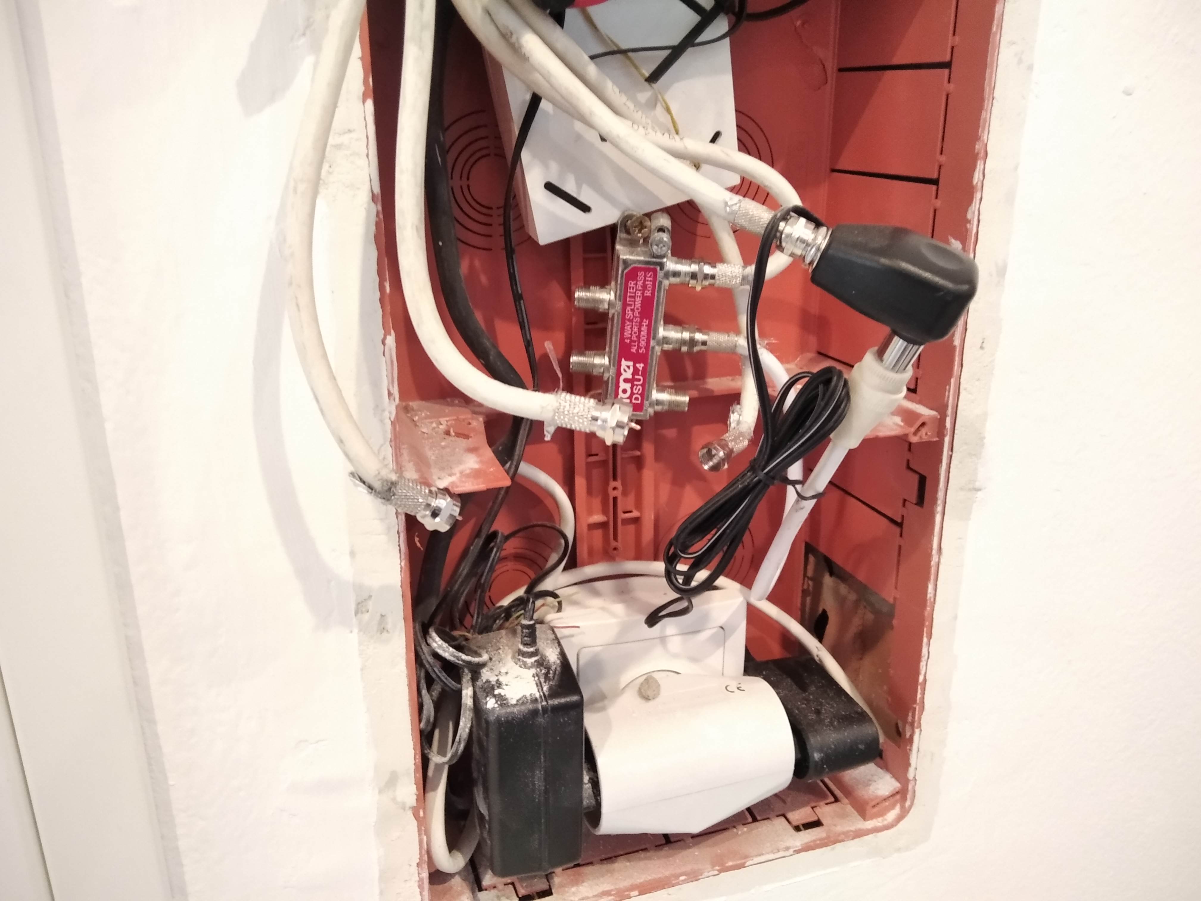 tady zasílám fotografii rozvodové skřínky...do té rozvodné svorkovnice jde koax z antény která je na baráku,do té svorkovnice je připojen i ten 12V zesilovač.Z té svorkovnice je to pak rozvedeno po celém baráku.V patře je jiná televize DVB-T2 dole mám setobox.Ale když jsem zapojil televizi z patra dole v přízemí ,tak se naladila v pohodě...