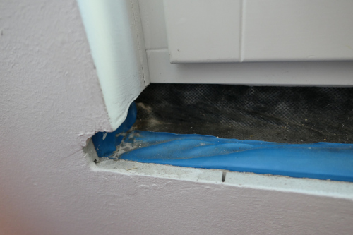 2.čím přilepit?(přichytit). Okolí parapetu je takovéto. Vnitřní stěna-fermacel(sádrovláknitá deska). Parozábrana(ta modrá) je přilepená k takové černé poloprodyšné lepící pásce, kterou se zatěsnil spoj mezi rámem okna a dřevěnou konstrukcí domu.Chtěl bych parapety přilepit PUR pěnou. Nebo lepidlem na dřevo D4? Na ten igelit jen tak něco nechytne. Pouze na tu polopropustnou pásku a ten fermacel. Na parapety nikdo stoupat nebude. Možná tak něco odkládat.