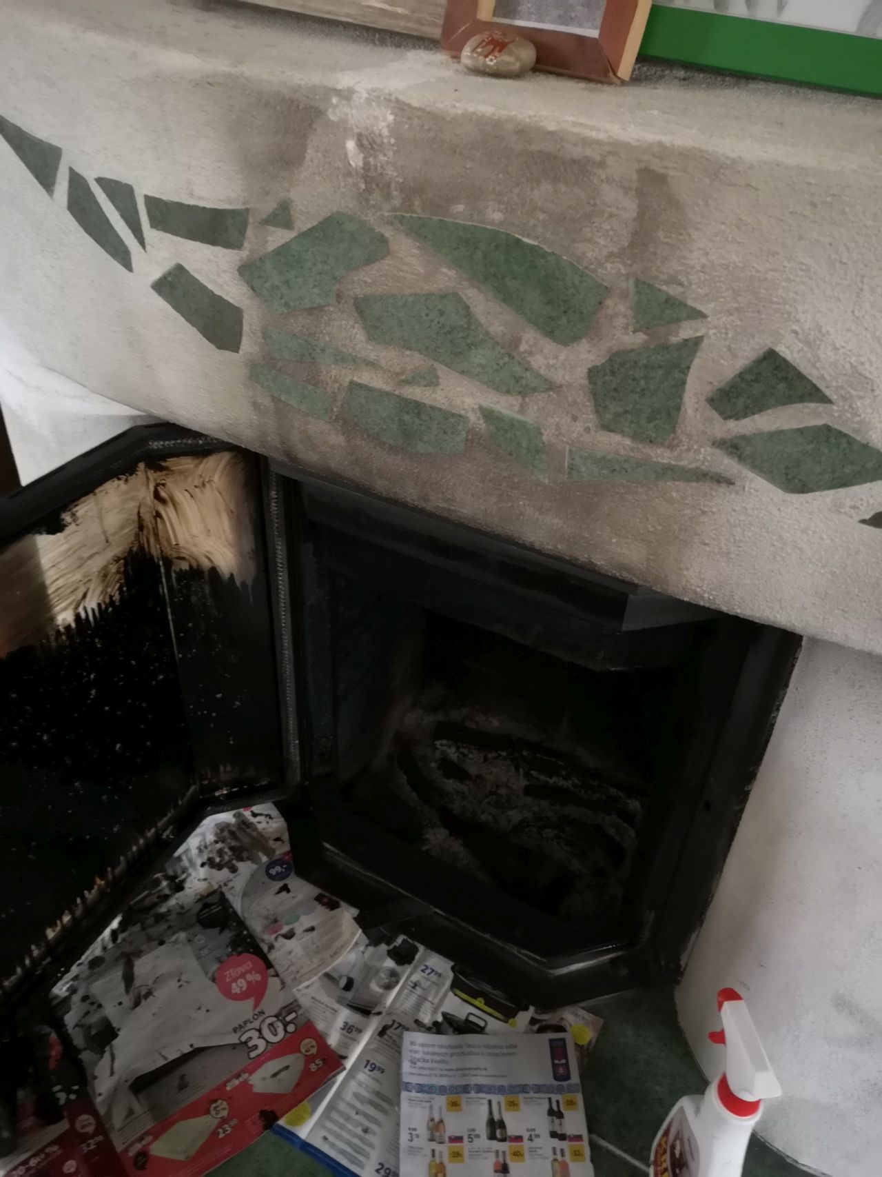 A manzelka sa stazuje, ze teraz uz ani to cierne nechce ist zo skla dole a to pouziva nejaky humus specialne na krbove skla.