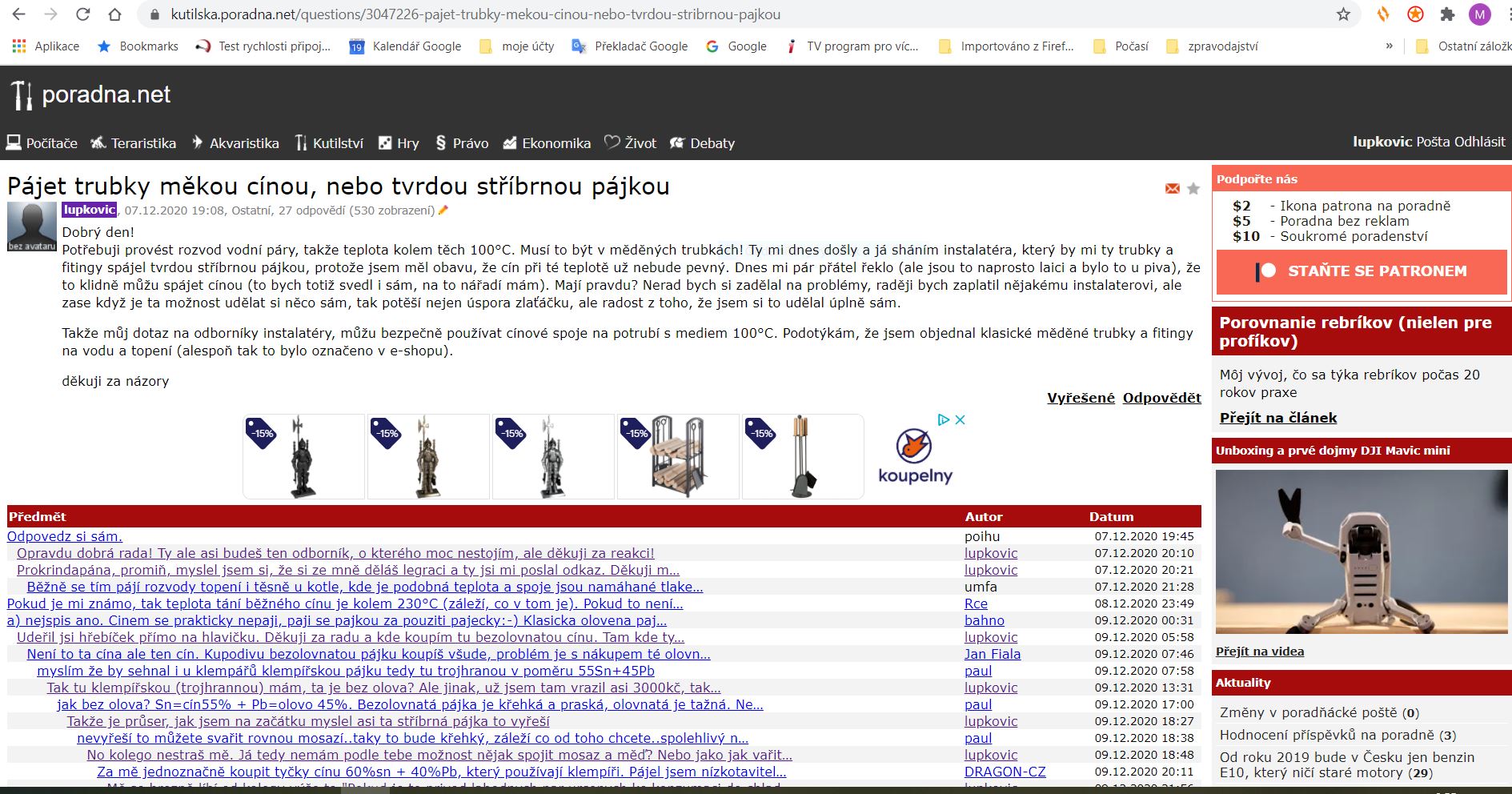 Na PC stačí v seznamu témat: https://kutilska.poradna.net/ kliknout u daného tématu na datum poslední odpovědi: https://kutilska.poradna.net/questions/3047226-pajet-trubky-mekou-cinou-nebo-tvrdou-stribrnou-pajkou?from=2020-12-10-21.47.06 potom se zobrazí jen příspěvky od posledí návštěvy (a text "Jsou zobrazeny jen nové odpovědi. Zobrazit všechny").