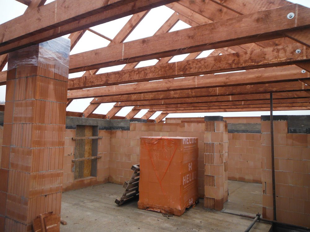 Ak nechceš, aby si mal po rokoch vnútorný previs, tj. prepad stredu z celkového pohľadu exteriéru na strechu, je vhodné podšprajcovať takto trámy.