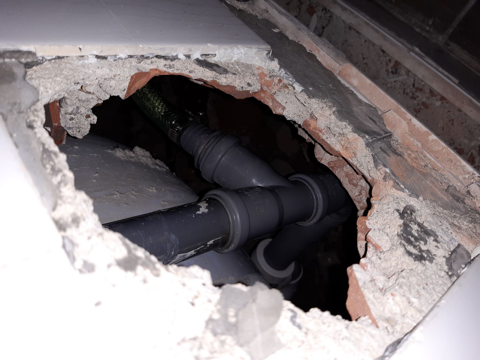 Pripojeni odpadni hadice pracky o prum. 20mm na stavajici odpad vany