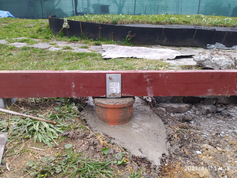 foto 1 = průměr patky 20cm o hloubce 80cm (nad zemi je průměr 15cm a výška 10cm) zakončené kotvou (ve vnitřku betonu roxory a nějaké pláty železa)