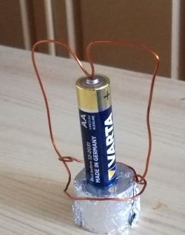 Ten drôt sa musí veľmi ľahko otáčať. Nesmie teda zvierať magnet v alobale, ale dotýkať sa musí len tak letmo. Ten alobal musí byť pripojený na mínus pól batérie, obvod musí byť uzavretý, tzn. drôt musí byť v miestach dotyku holý. Pri pokusoch musíš mať okuliare, lebo batéria ide prakticky do skratu a ak je dobre utesnená môže pri dlhšom experimentovaní explodovať. Krútiaci moment je malý, stačí sotva na roztočenie samého seba (aj to nie vždy) a nič iné než pozerať na to s tým neurobíš. Škoda batérie. Viac uvidíš na youtube ako na vlastnoručne urobenom modeli, v prípade tohoto "motora" je to robené bez trikov (na rozdiel od rôznych perpetuum mobile čo tam tiež sú).