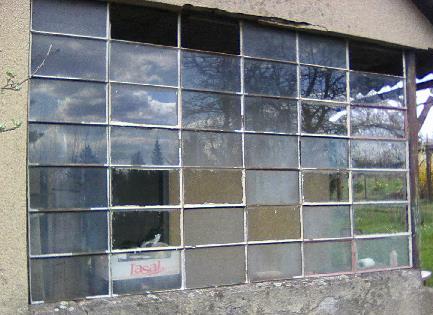 U chatičky na zahrádce mám před vchodem takovéhle zasklení. Za ta desetiletí co tam ta chatička stojí se některé tabulky vysklily, jiné popraskaly (možná se tam dětičky učily trefovat prakem).
