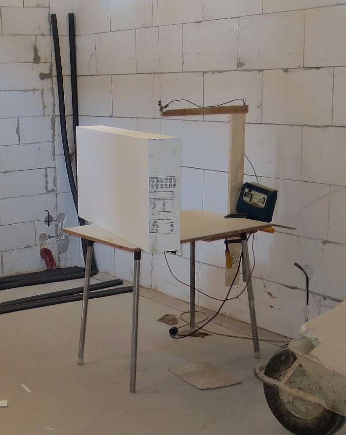 Na zateplení domu jsem si udělal podobný aparát, jen jako zdroj mi postačila klasická transformátorová autonabíječka, odběr byl do 12A. Nakrátko šlo řezat plynule, delší strany pomaleji, ale také se dalo. Použil jsem obyčejný, silnější svářecí drát z CO-čka. Nevydržel moc dlouho, tak jednou za den se přepálil, ale bylo ho dost.