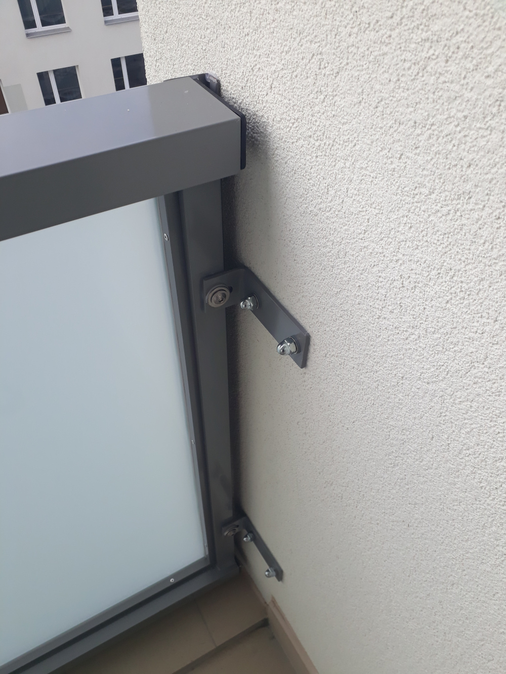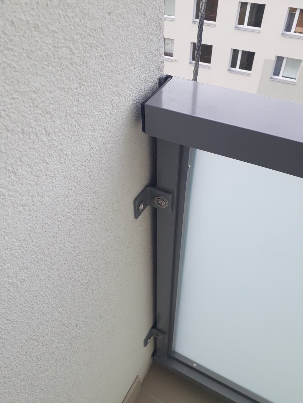 Ved to ma T tvar a rovnaky T tvar ma konstrukcia balkona, takze sa to uchyti priamo na nu...podla obrazku ide o pomerne hrubostenny material, takze sa to nebude prehybat.