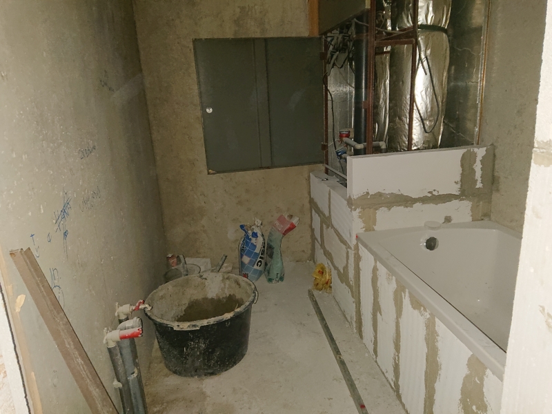 No bylo v tom vybourání jádra, odvoz jádra - to byl poprvé kontejner. Pak vybourání kuchyňské linky a příčky u kuchyně + odvoz - to byl podruhé kontejner. A pak to na fotce. Ještě tam je betonáž podlahy - bude tam podlahové topení - posílám foto. Usazení vany, elektro + rozvaděč, nové rozvody vody do koupelny + přívod do kuchyně - ta je za stěnou co je vana. A zaklopení sádrošem. Ano, je to zaplacené...